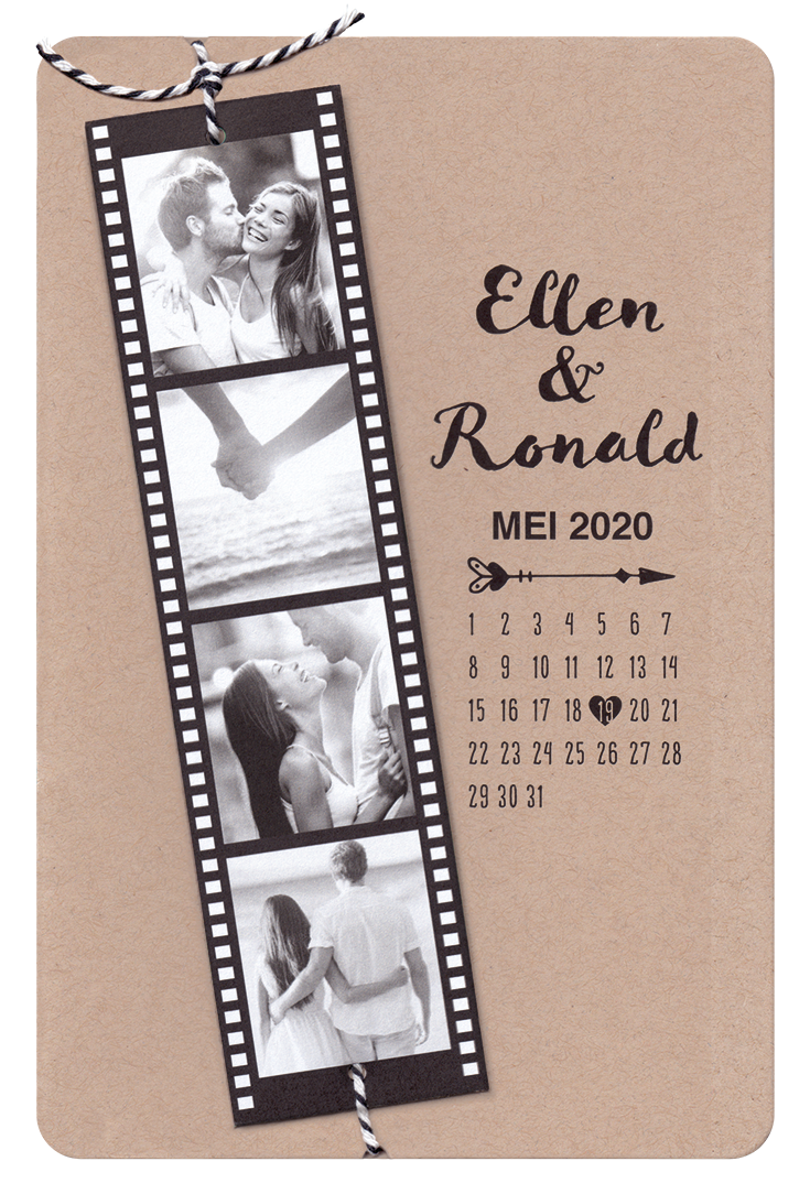De gave filmrol vol eigen foto’s op een kraftkaart, maken van deze trouwkaart een echte eyecatcher!